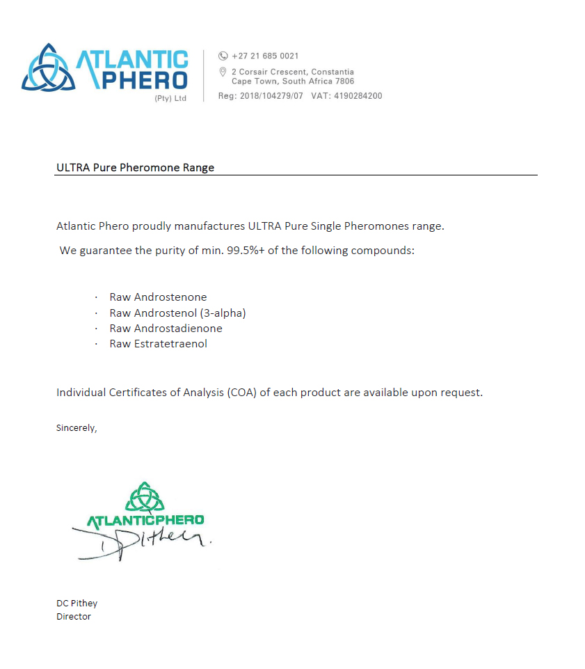 This product is the greatest technological development in pheromone production in recent years. SINGLE PHEROMONES are the purest pheromones worldwide, with guaranteed pheromone purity above 99.5%. Advanced production